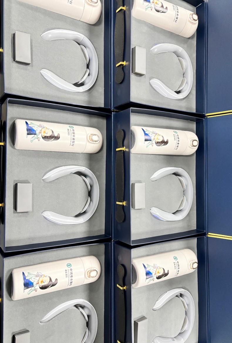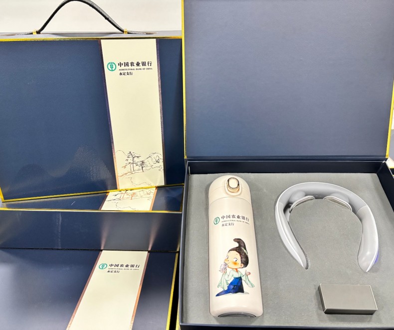 礼品表面烫上色箔等材料的文字和图案(有色彩),有无色烫印,单色烫印,混合式烫印和套印等。