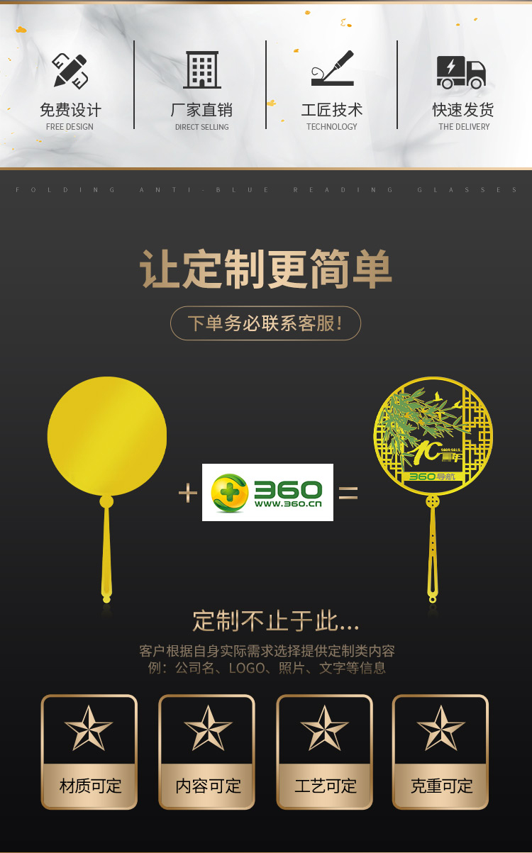 礼品表面烫上色箔等材料的文字和图案(有色彩),有无色烫印,单色烫印,混合式烫印和套印等。