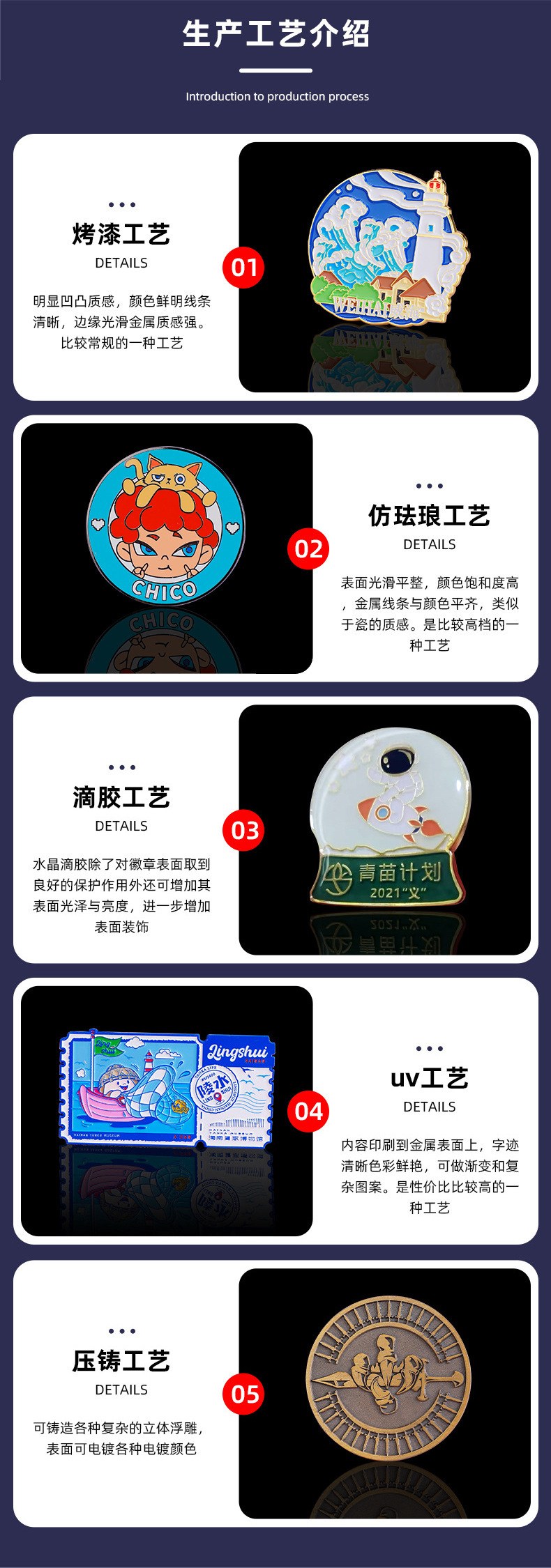 企业金属徽章一般都是进行定做的,那么金属徽章定做的工艺主要有哪几种呢?下面我们一起来了解下吧。 一:冲压 冲压徽章一般采用的徽章材料有铜(紫...