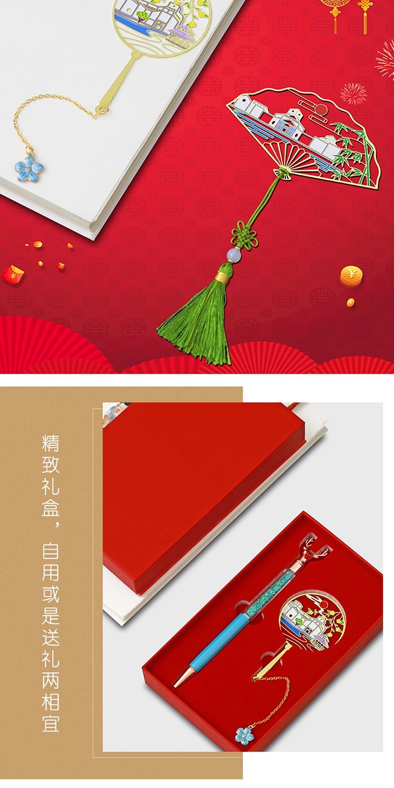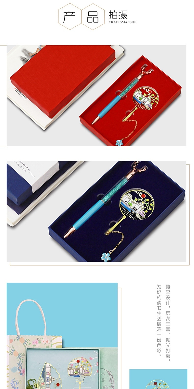 礼品表面烫上色箔等材料的文字和图案(有色彩),有无色烫印,单色烫印,混合式烫印和套印等。