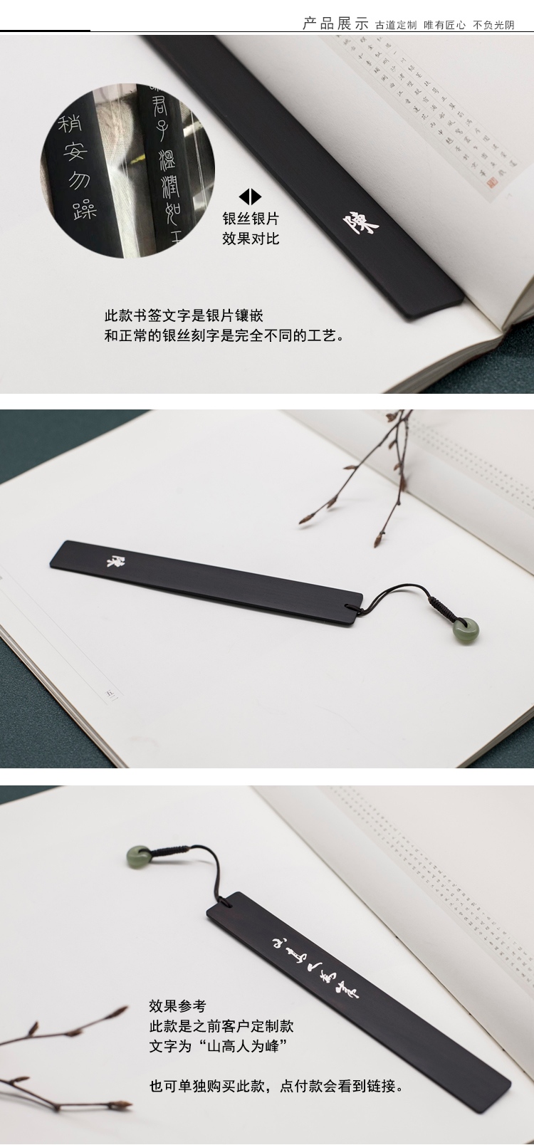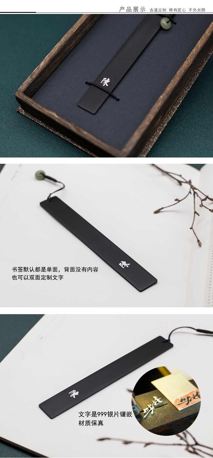 银字创意黑檀书签定制木质高档精致古典中国风文艺高级吊坠礼盒