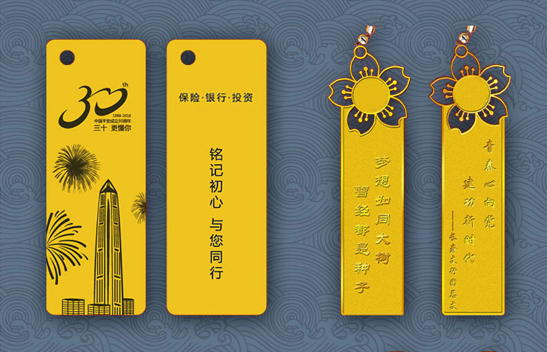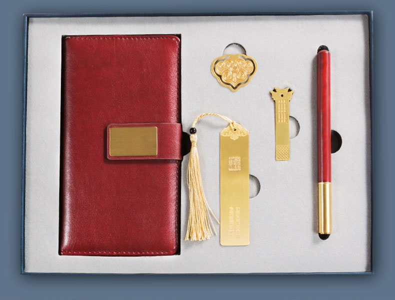 礼品表面烫上色箔等材料的文字和图案(有色彩),有无色烫印,单色烫印,混合式烫印和套印等。