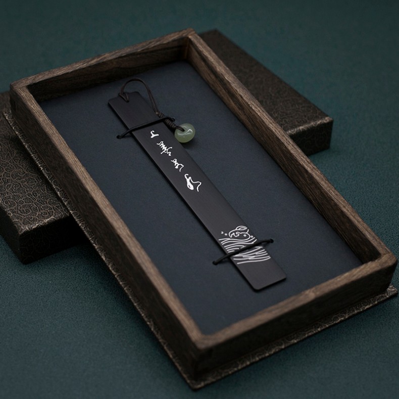 银字创意黑檀书签定制木质高档精致古典中国风文艺高级吊坠礼盒