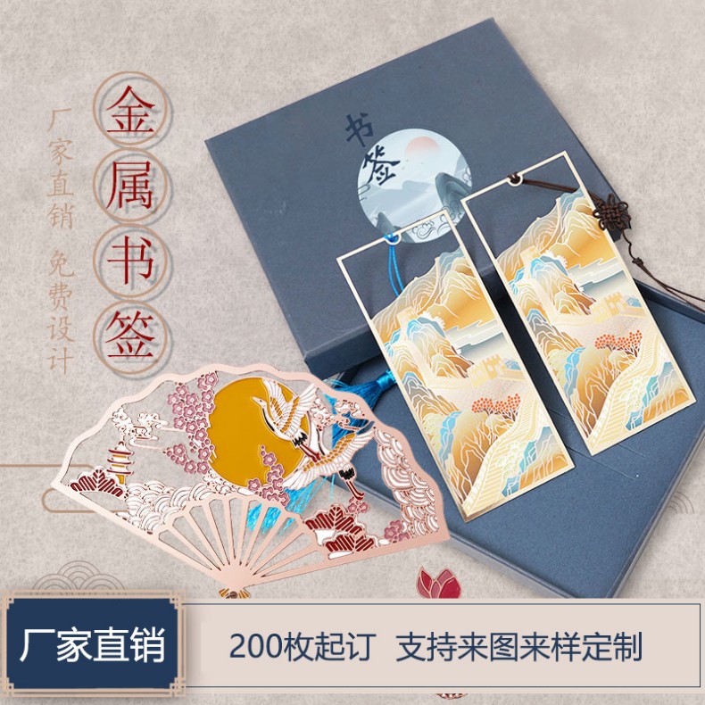 中国风金属镂空书签定制logo来图样定做景区文创礼品套装刻字订制