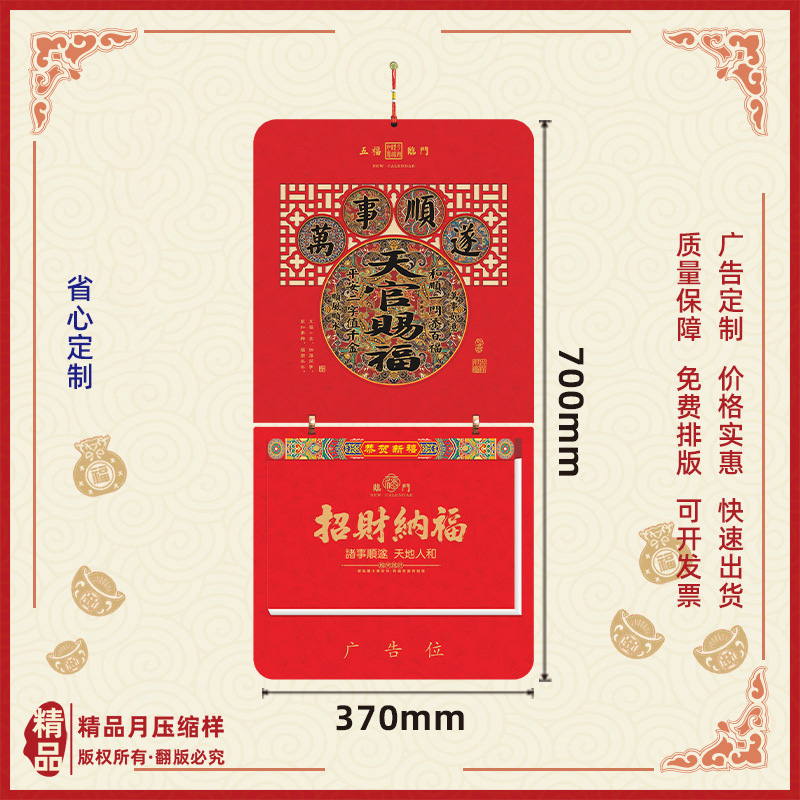 2026马年挂历金箔福字吊牌定 制中国风批发挂历厂家印刷可印logo