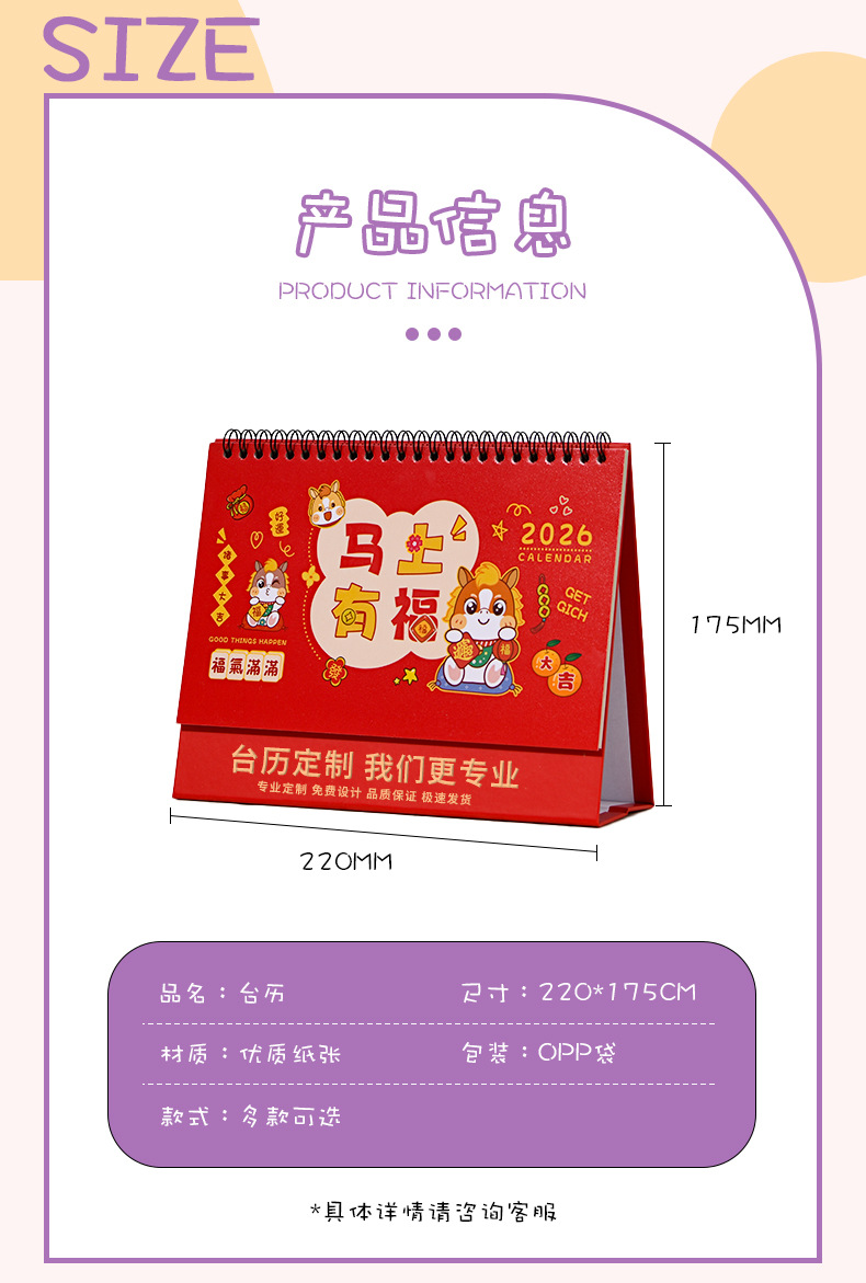 当前位置:主页 > 印刷品定制 > 宣传印品 > 画册类 > 台历 > 2026马年简约台历国潮可爱可定 制备忘打卡记事本办公室桌面摆件