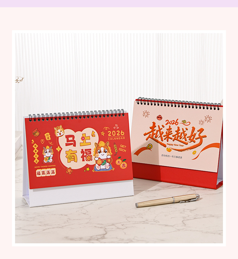 2026马年简约台历国潮可爱可定 制备忘打卡记事本办公室桌面摆件