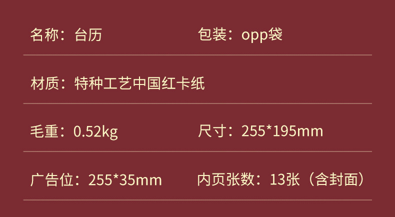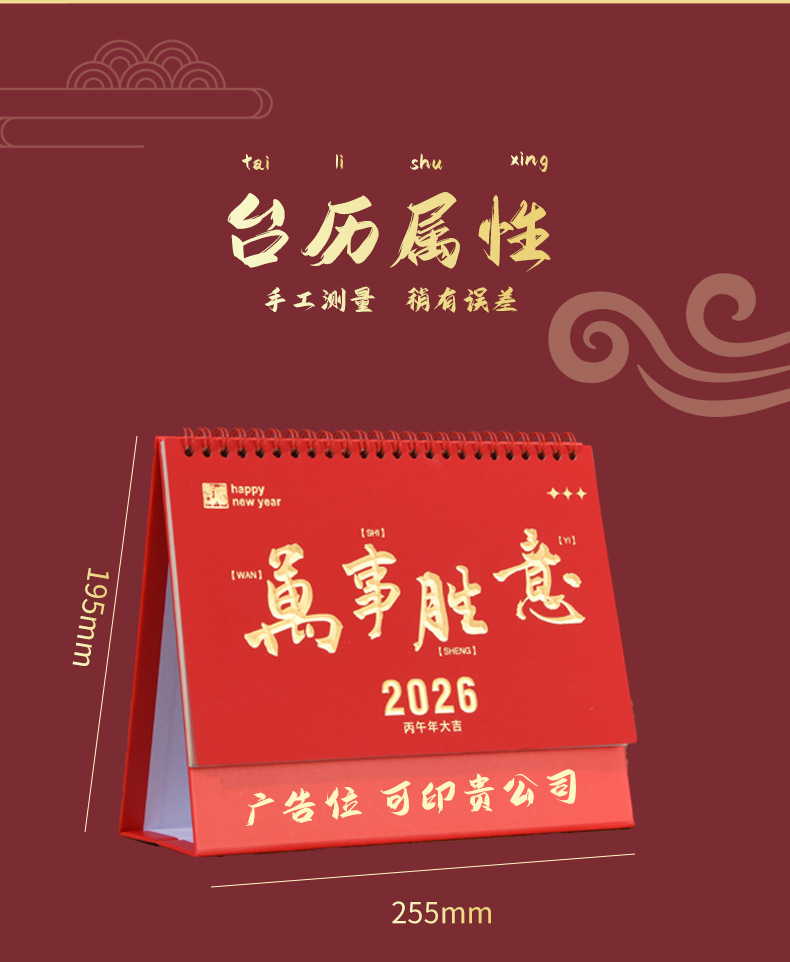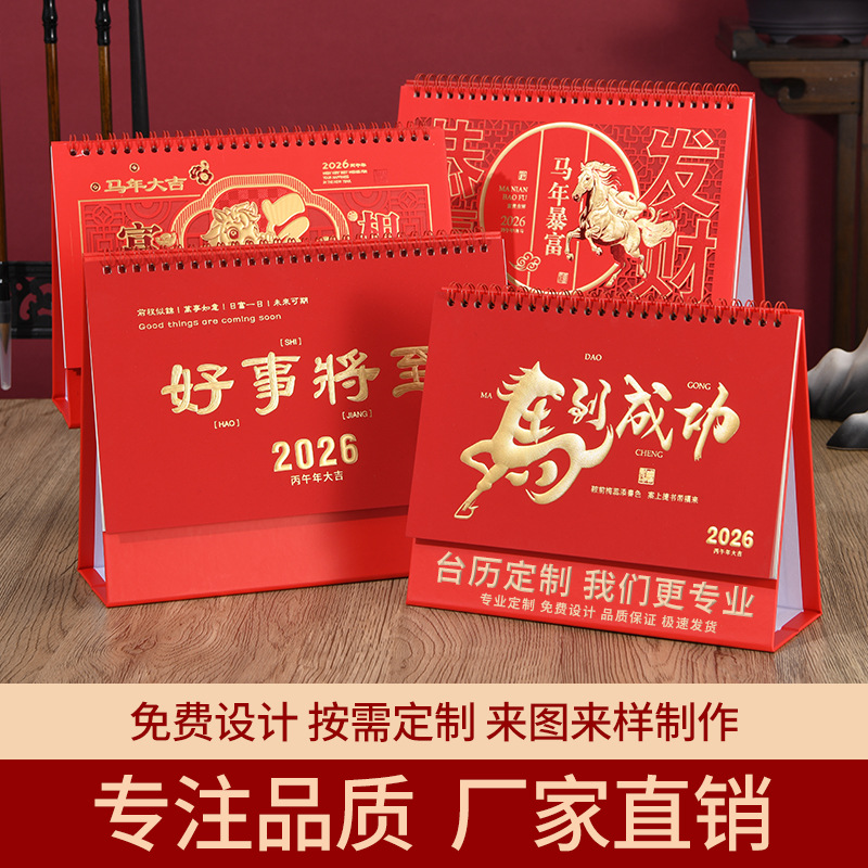 2026年马年台历中国红定 制企业专版广告logo创意日历厂家直销