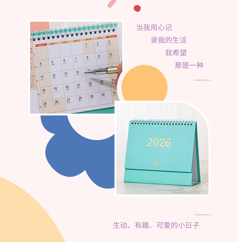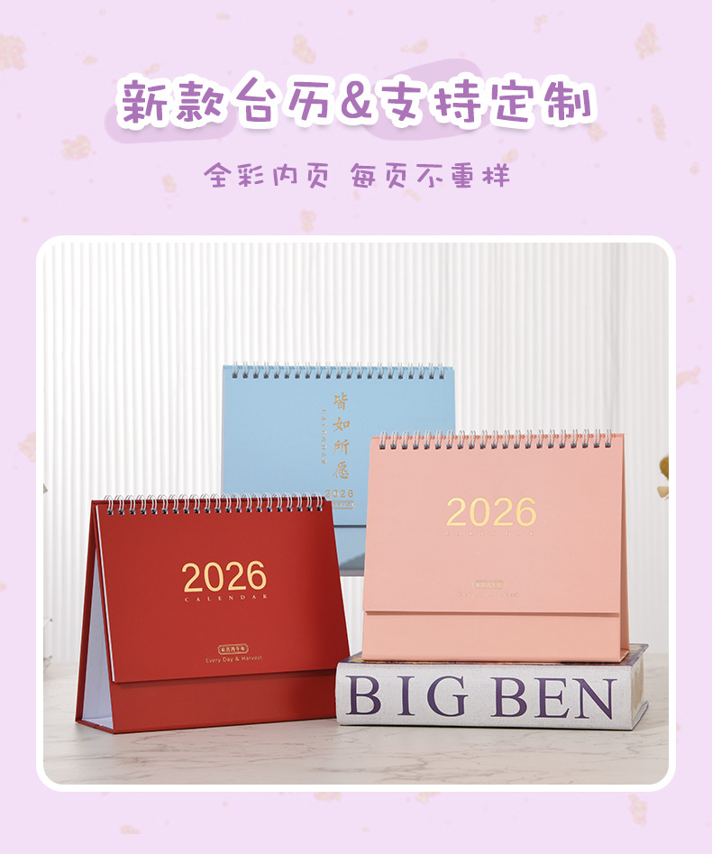 2026纯色台历 ins多巴胺彩色简约韩系定 制桌面摆件学生公司书写