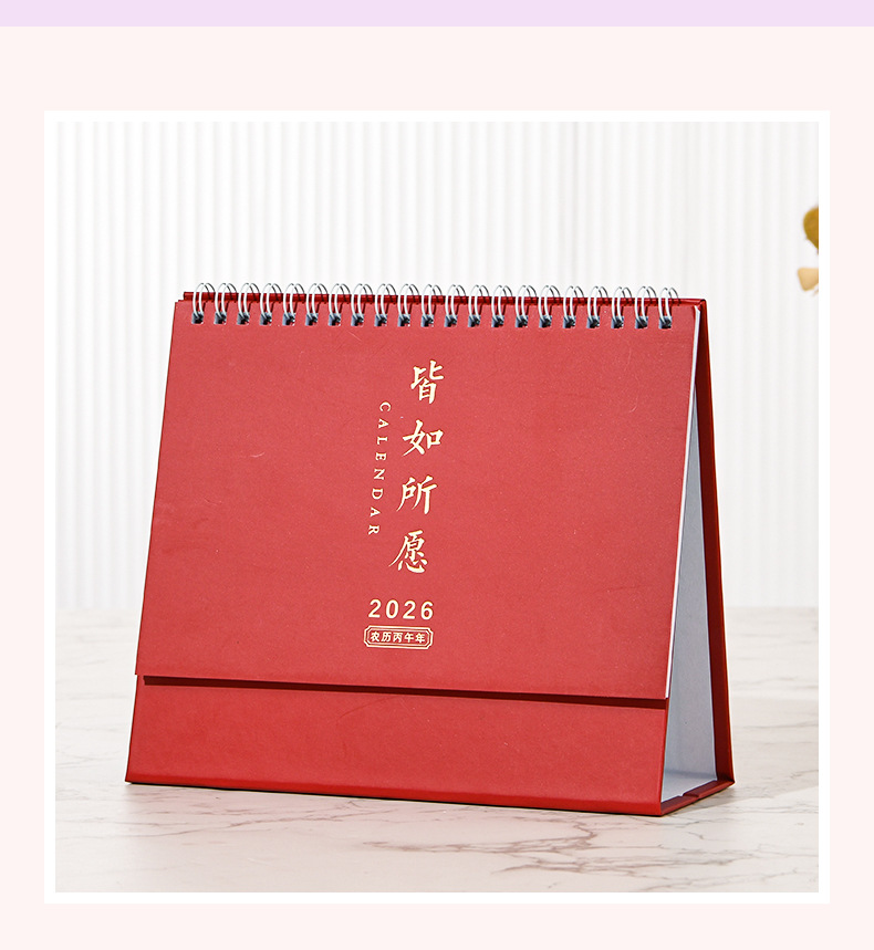 2026马年金雕台历厂家直销商务企业办公 记事打卡中国红定 制台历