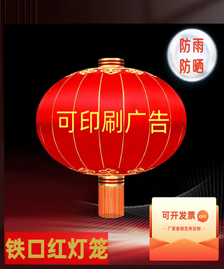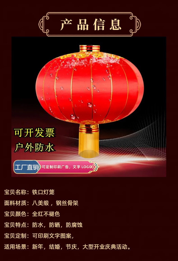 户外防水节日广告铁口灯笼结婚喜庆大红铁口绸布春节灯笼批发